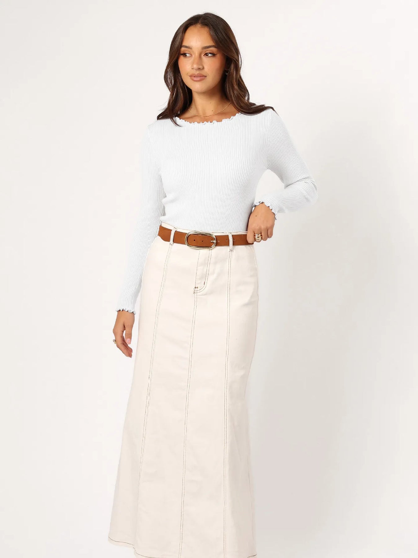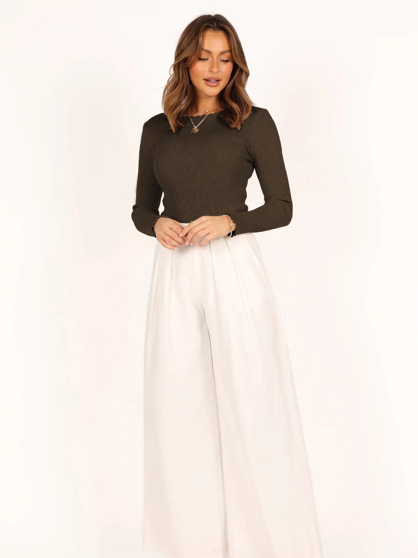 Este top de manga larga con cuello redondo destaca por su diseño ceñido y su tejido de canalé, que estiliza la figura y ofrece comodidad durante todo el día. Su estilo versátil lo convierte en una prenda básica imprescindible para combinar con pantalones, faldas o prendas de sastrería. Elegante y funcional, es perfecto tanto para un look casual como para ocasiones más formales.