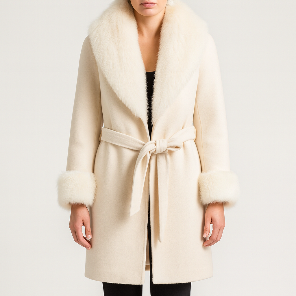 Abrigo largo para mujer con cuello de pelo y cinturon - Margaretti