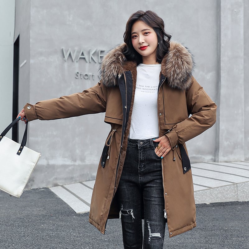 Cazadora larga para mujer con cuello efecto pelo - Mirelle