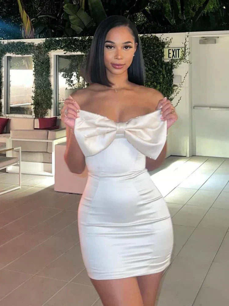 Ezra - Vestido de satén sin tirantes con lazo